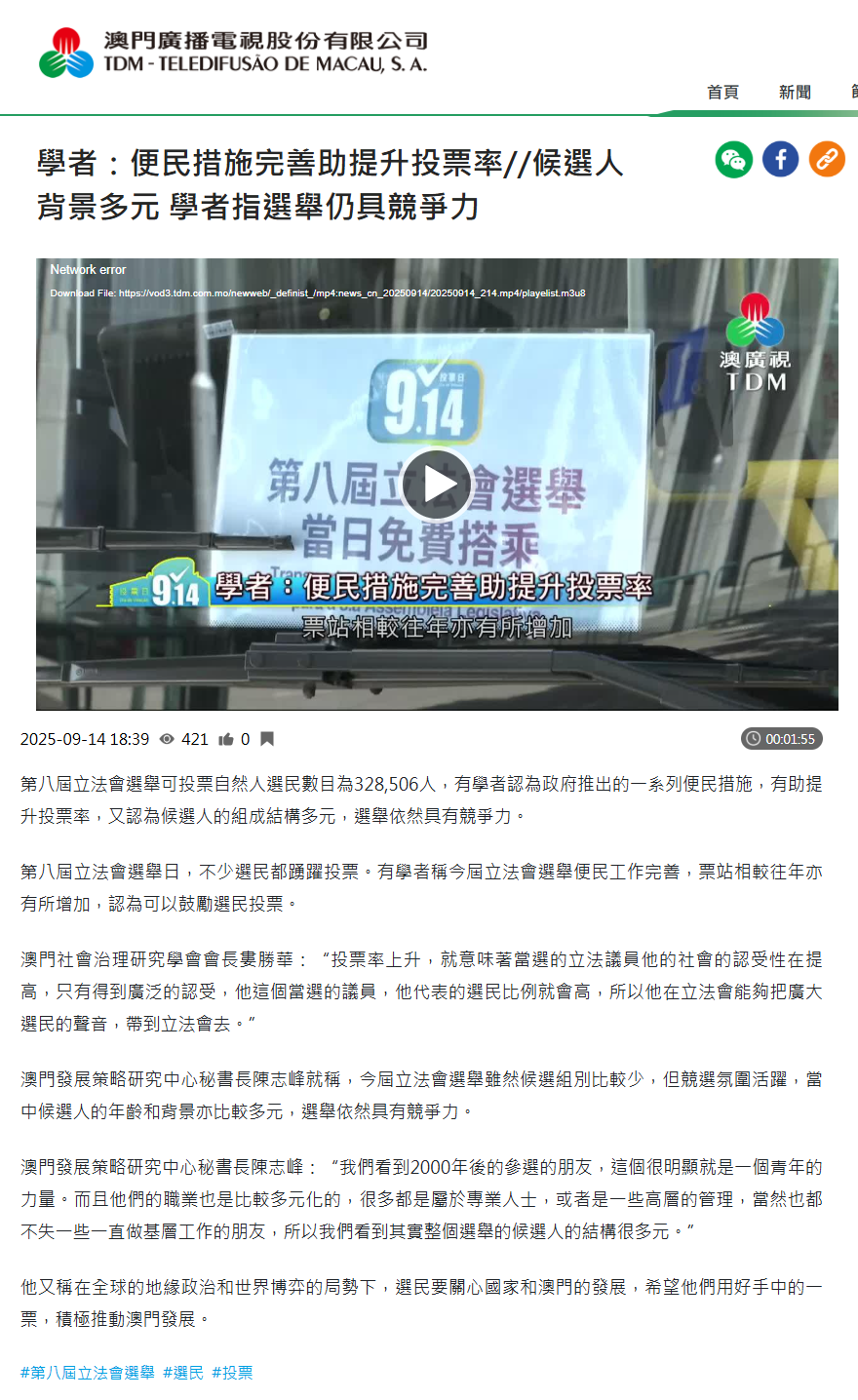 本文整理自 2025.09.14 澳門廣播電視股份有限公司