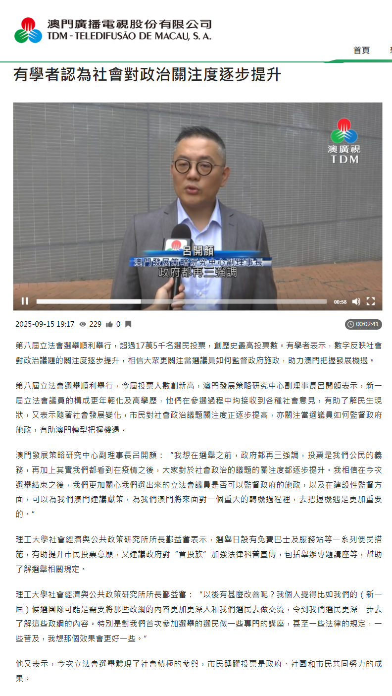 本文整理自 2025.09.15 澳門廣播電視股份有限公司