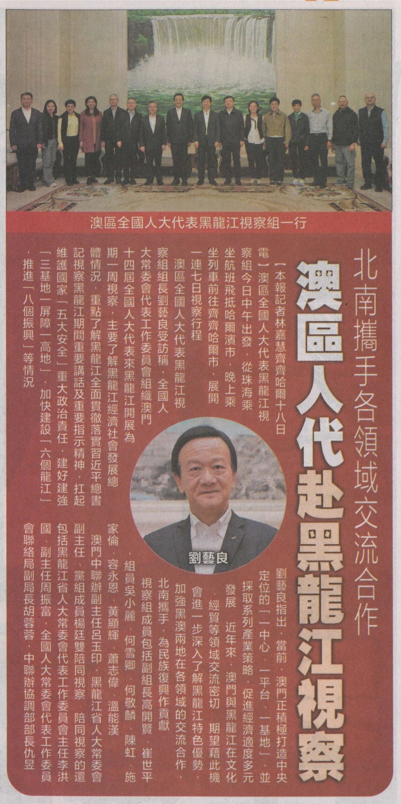 澳區全國人大代表黑龍江視察組展開一連七日視察行程。