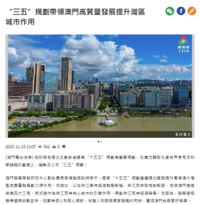 澳門發展策略研究中心副秘書長葉偉強受訪時表示,國家“十五五”規劃建議提出鞏固提升粵港澳大灣區高質量發展動力源作用。他指出,以往珠江東岸經濟發展較強,珠江西岸則相對較弱,相信澳門透過推進四大工程,將加強作為珠江西岸核心城市的引擎作用,帶動珠江西岸經濟發展。他認為,發展過程雖機遇與挑戰並存,但要有信心和耐心應對,在融入和服務國家發展的同時,實現澳門自身更好發展。